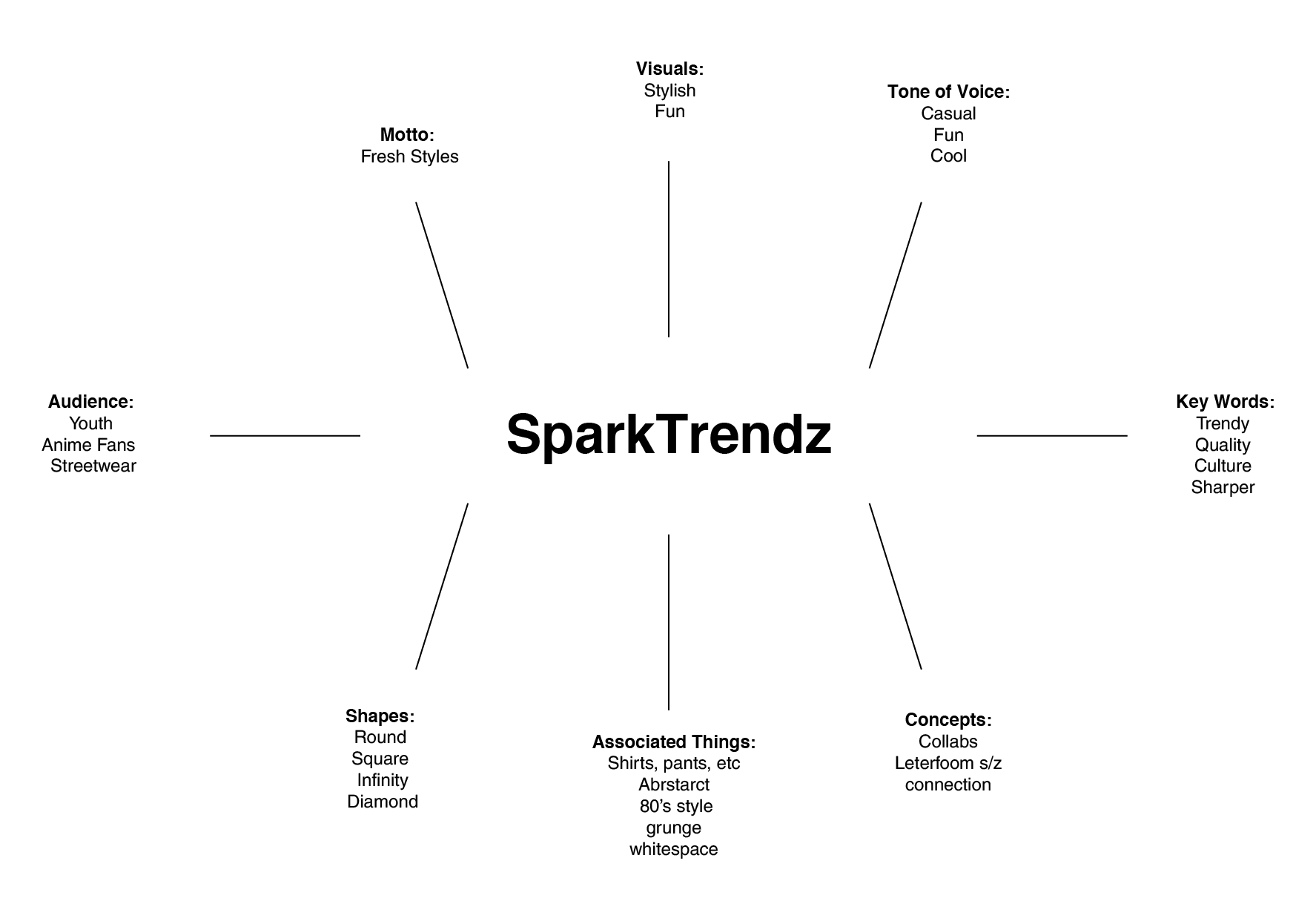 SparkTrendz is an anime clothing brand that partners with artists to create subtle, wearable designs for everyday fashion. For this project, I reworked their logo and branding guidelines to better emphasize their collaboration-driven model and strengthen their visual identity. I also drew back to the time when they would partner with artists to create unique designs.